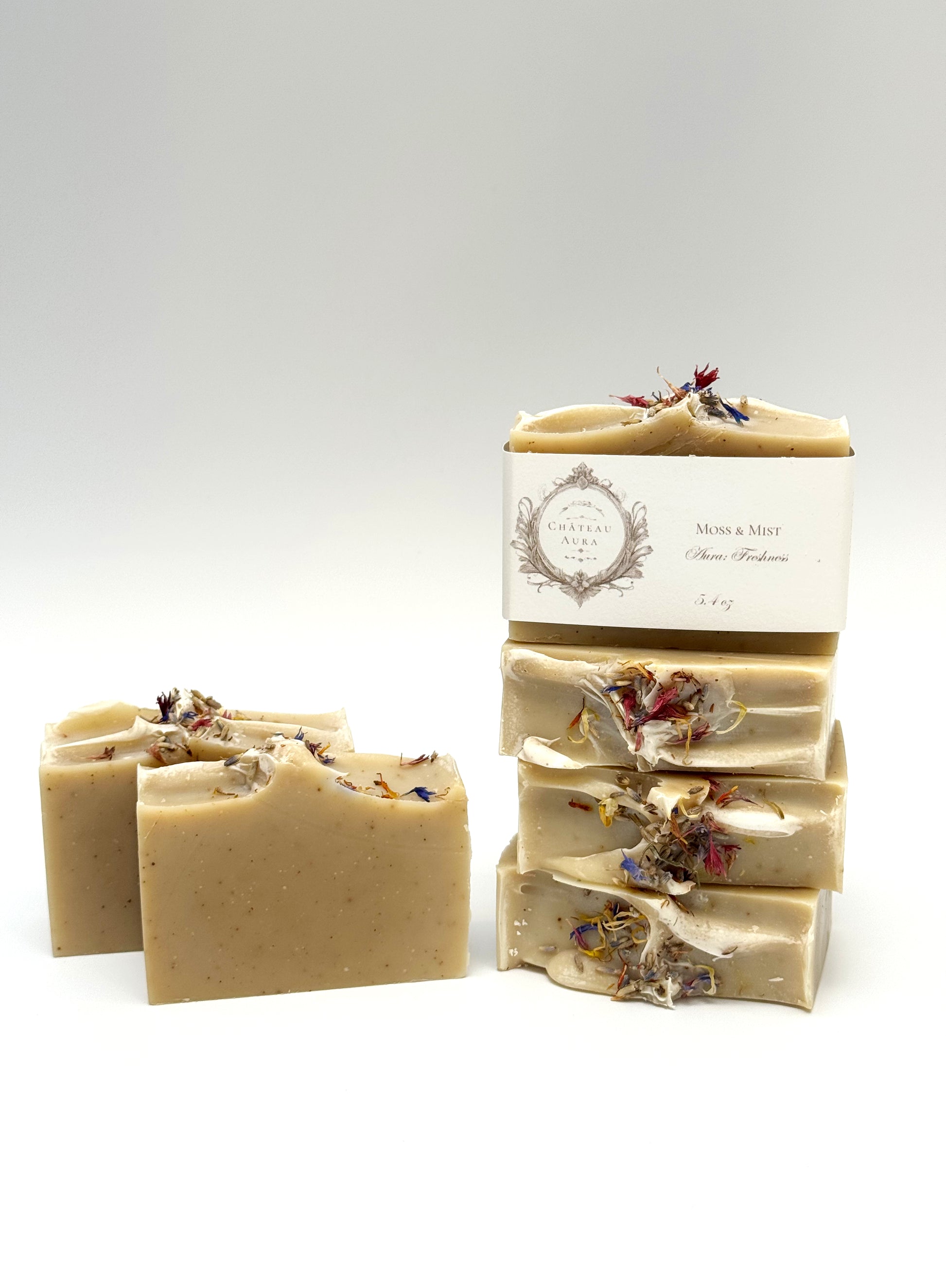 At Chateau Aura, every creation is a handcrafted ritual designed to elevate your aura — a moment of calm, beauty, and intention woven into the everyday. Moss & Mist embodies this philosophy through the quiet serenity of a rain-kissed forest: soft green moss, leaves touched by morning dew, and the gentle freshness of rainfall.